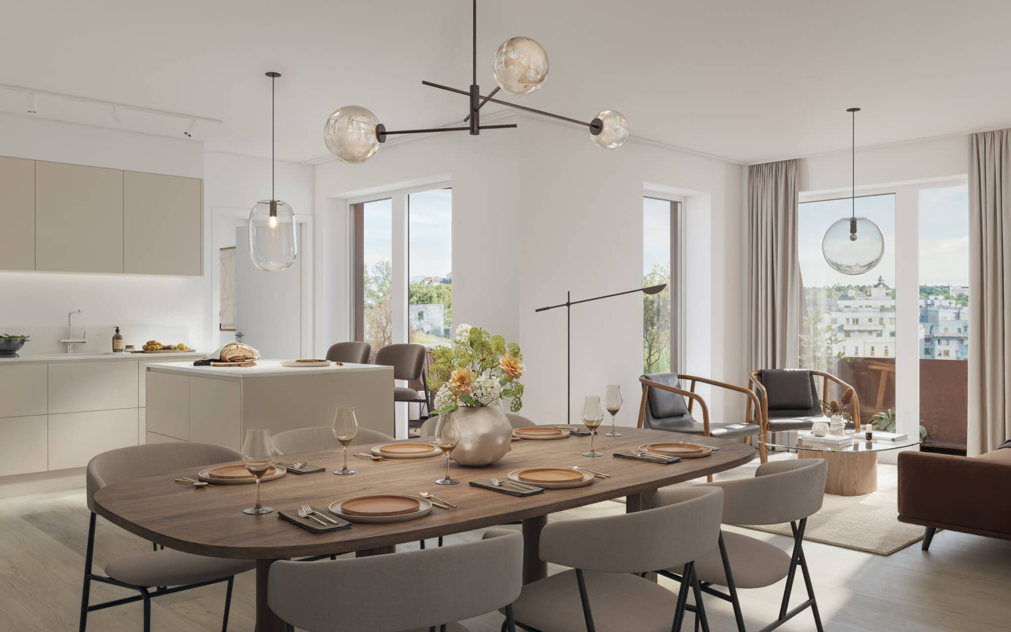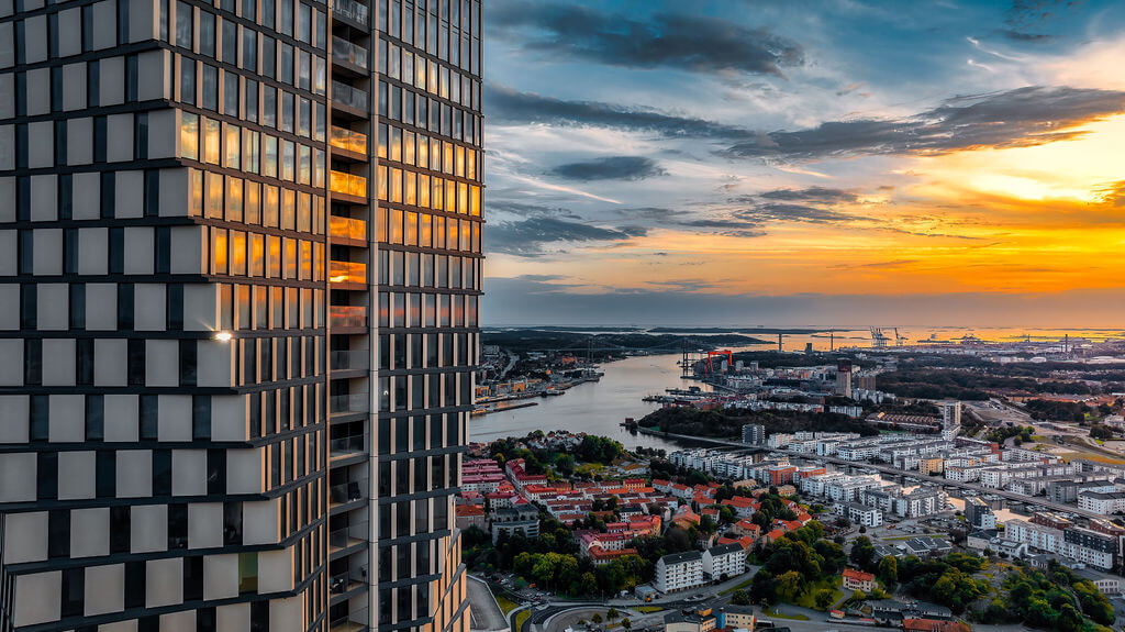 De majestätiska vyerna över Göteborgs hamninlopp i väster är lika vackra som utblickarna över Linnés takåsar mot söder. Genom bostädernas panoramafönster får du fri utsikt över Göteborgs stadssilhuett som skapar en filmisk atmosfär – kväll efter kväll.