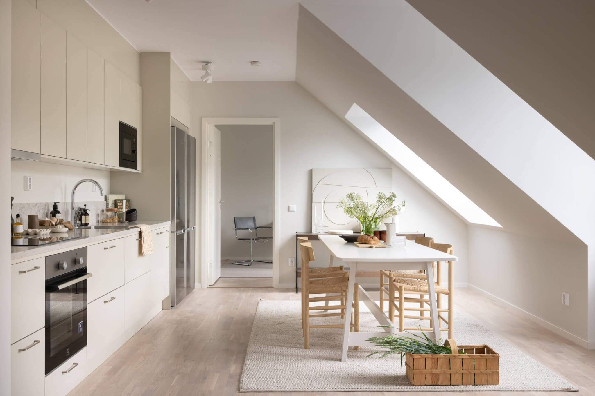 – Det är allt fler som uppskattar och vill ha färdiga proffslösningar. Hos oss är den tjänsten en del av vårt grundkoncept, den ingår i köpet. Utgångspunkten är att man ska leva sitt liv i bostaden. På det sättet är funktionen det viktigaste. Men vi lägger samma vikt vid känslan av att komma hem och den omsorgen tar sig uttryck i vår design och inredning, säger Karl.